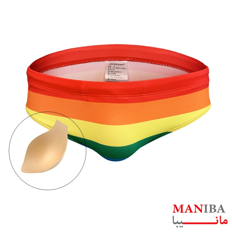 مایو رنگین کمانی ADDICTED BS419 بسیار جذب سبک نرم و راحت به همراه کاپ ( پد فشاری ) جلوی مایو ساخته شده از پلی استر با کشسانی بالا